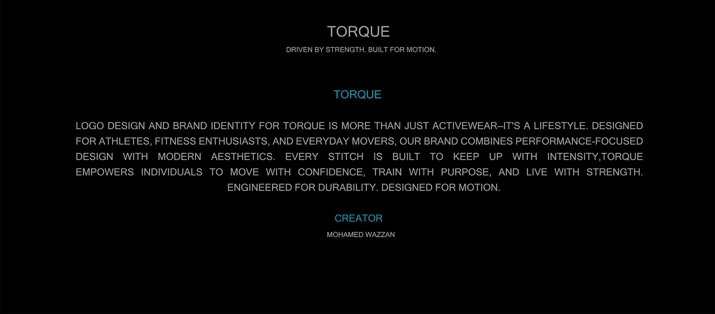 Design de logo e identidade visual para a TORQUE é mais do que apenas moda esportiva — é um estilo de vida. Criada para atletas, entusiastas do fitness e pessoas ativas no dia a dia, nossa marca combina design focado em performance com uma estética moderna. Cada costura é feita para acompanhar a intensidade. A TORQUE inspira as pessoas a se movimentarem com confiança, treinarem com propósito e viverem com força.